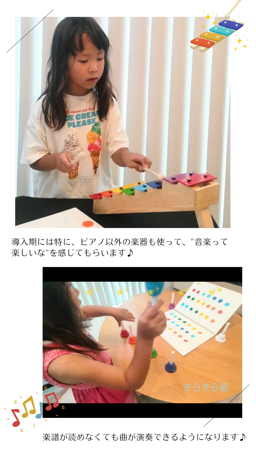 簡単な楽譜の読み方、リズム練習、リコーダーや鍵